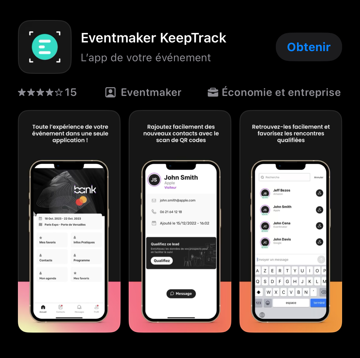 Find the list of participants by downloading the Eventmaker KeepTrack app